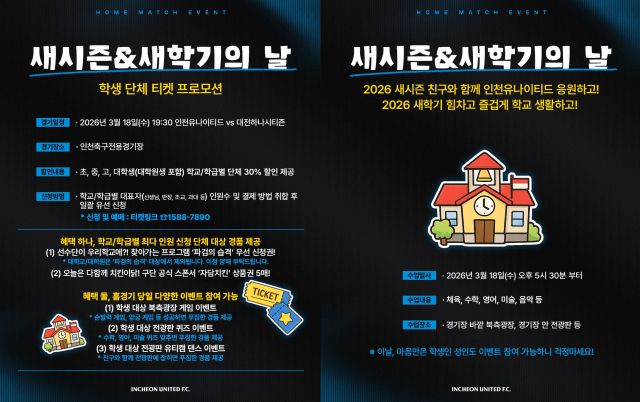 인천유나이티드, 4라운드 대전하나시티즌전…개학 맞아 이벤트 마련