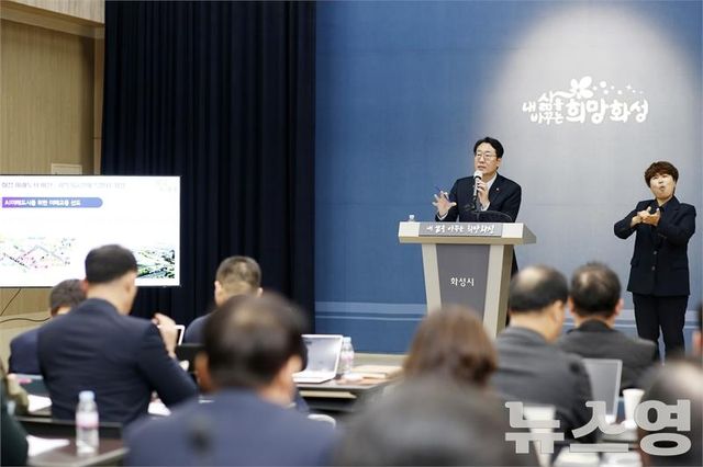 정명근 시장이 8일 화성시청 5층 브리핑룸에서 기자회견을 열고 2025년도 예산안과 내년 1월 출범할 특례시에 대한 청사진을 제시했다.