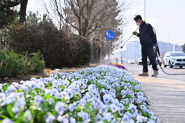 '도심 관광지에 봄을 심는 속초시'
