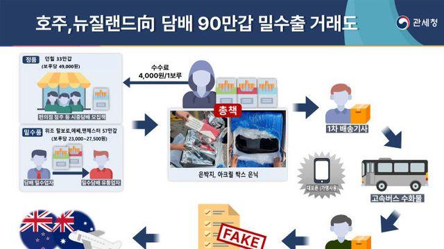 담배 90만 갑 밀수출 일당 검거…100억대 시세차익 노려