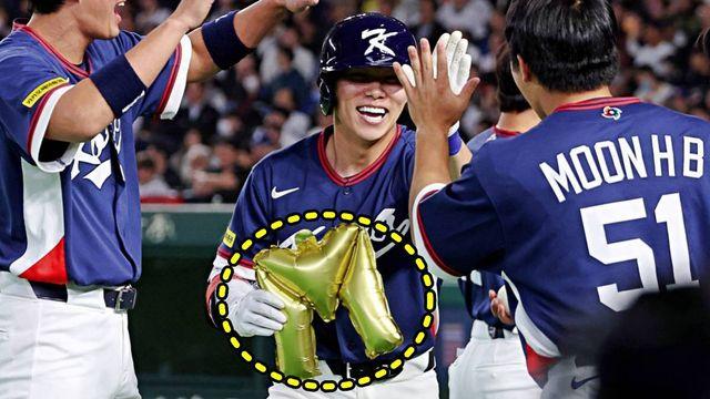 '이런 뜻이었다고?'…한국 야구대표팀 홈런칠 때마다 등장한 'M자 풍선' 정체