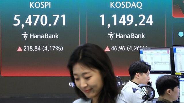 코스피, 장초반 5% 급등에 매수 사이드카 발동