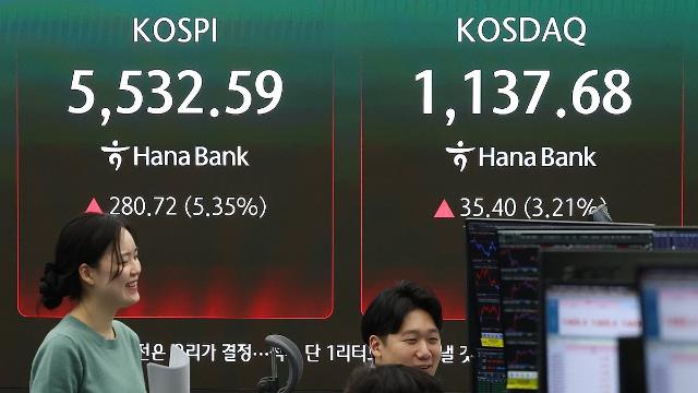 [증시] 코스피, 이란 사태 진정 기대에 5% 급등…전날 낙폭 대부분 만회